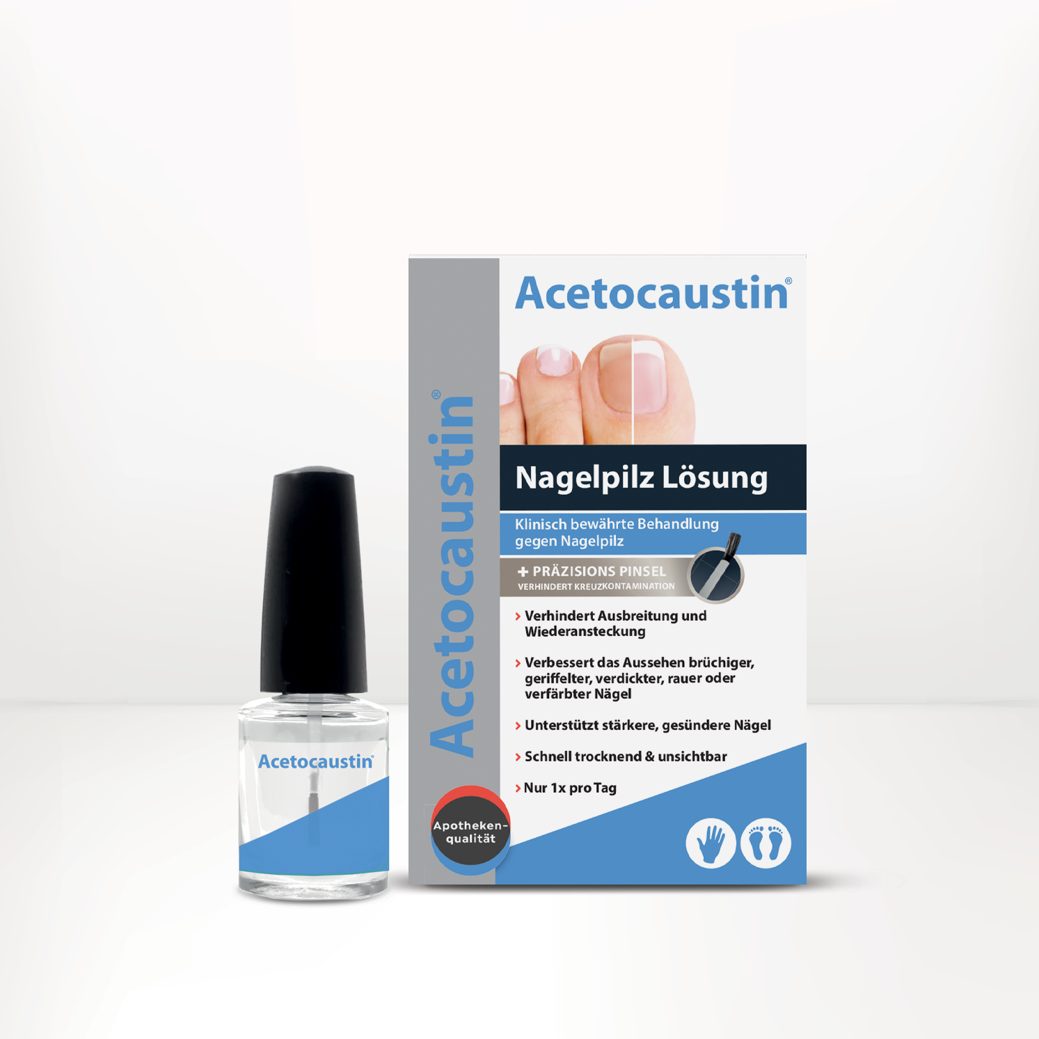 Acetocaustin Nagelpilz Lösung ist ein Medizinprodukt zur Behandlung und Vorbeugung von Nagelpilzinfektionen (Onychomykose).